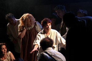 In a play which effectively turns a black and white world into varying shades of gray; where the protagonist of the tale is the dark anti-hero Sweeney Todd, it requires an even larger and shadier more tortured soul to take and hold the mantle of a villain worthy of Todd’s malicious obsession. In this, William Darkow masterfully plays the deliciously tormented Judge Turpin. In contrast to Todd, who is suffering from pains inflicted upon him by the injustice of a world run by the elite who control the money and power, the Judge struggles again his very own self. In one particularly disturbing scene (remarkably portrayed by Darkow) the Judge, fighting against his fleshly passion and the consuming desire to force itself carnally upon Joanna (Todd’s daughter and the Judge’s own ward), self flagellates himself before finally surrendering and giving himself fully over to his own base nature.
